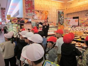 「店ではたらく人々の仕事」の学習で、ぎゅうとらに見学に行きました。お店の品物はどこから来るのか、お店で働く人々はどんな工夫や努力をしているのかなど、実際に見たり聞いたりして学習してきました。(2組と4組は12月に行きます)