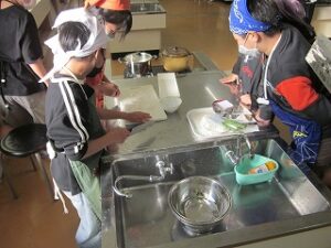 今日は調理実習でした。ごはんとみそ汁を作りました。ごはんは透明な鍋で炊き、みそ汁は煮干しからだしをとって、大根、ねぎ、油揚げを具に作りました。おいしくできたかな。