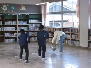 放課後、6年生が残って全部の教室のワックスがけをしてくれました。おかげで床がピカピカになりました。6年生のみんな、ありがとう!