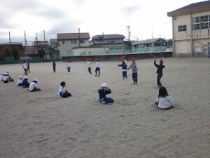 2年生もなわとびをがんばっています。後半は、みんなで大なわをしました。