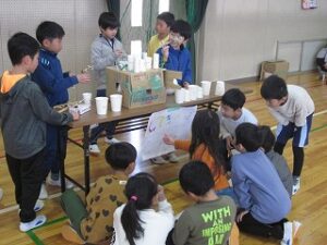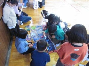 1・2年生で「おもちゃランド」をしました。2年生の子たちが、1年生の子たちをたくさんの遊びコーナーに招待して楽しい時間を過ごしました。2年生は、1年生に楽しんでもらうために、みんなであれこれ考え一生懸命準備してきました。招待された1年生は、とても楽しそうにしていました。
