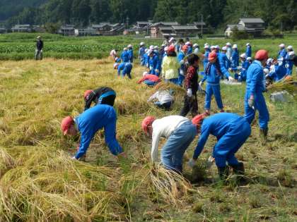 9月6日(木)に稲刈り体験を行いました。4月に田植え体験をさせていただいた5年2組の三宅さとこさんの家の田んぼを再びお借りしての体験です。 田植えの時にも色々と教えていただいたJAの中村さんに、稲刈りの仕方等を教えていただきました。初めは刈るのに苦戦していた子も、力の入れ具合をマスターするとサクサクと刈ることができていました。コンバインで稲を刈る様子も見学させていただきました。 収穫したお米は収穫祭で頂く予定です。お世話になった方々、貴重な体験をさせていただき、ありがとうございました。