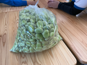 この日さやむきをしたそら豆は、翌日の給食のメニュー「そら豆の塩ゆで」で使われます。たっくさんのそら豆がとれました。自分たちが協力してさやむきしたそら豆なので、しっかり食べてくれると嬉しいです。